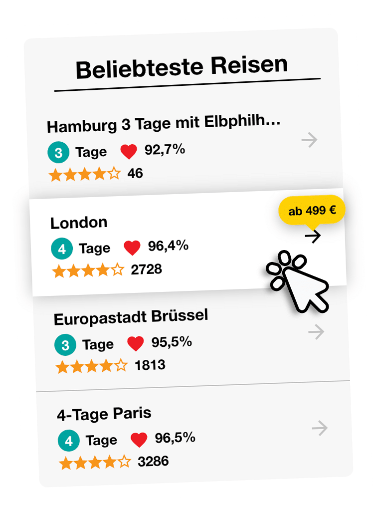 Jetzt geht es aber um SIE und Ihre nächste unvergessliche Reise in Ihre Traumstadt.