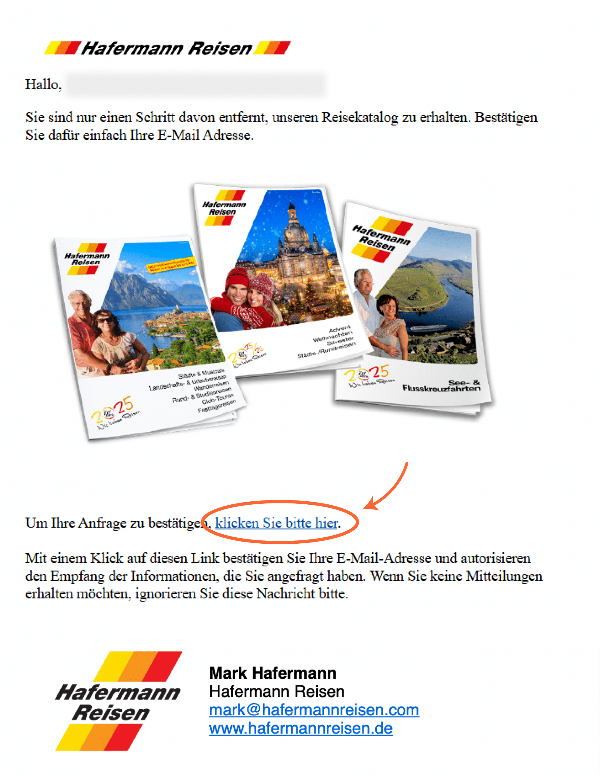 - Reisekatalog herunterladen: Sobald Ihre E-Mail bestätigt ist, erhalten Sie eine weitere E-Mail mit einem direkten Downloadlink für Ihren kostenlosen Katalog!